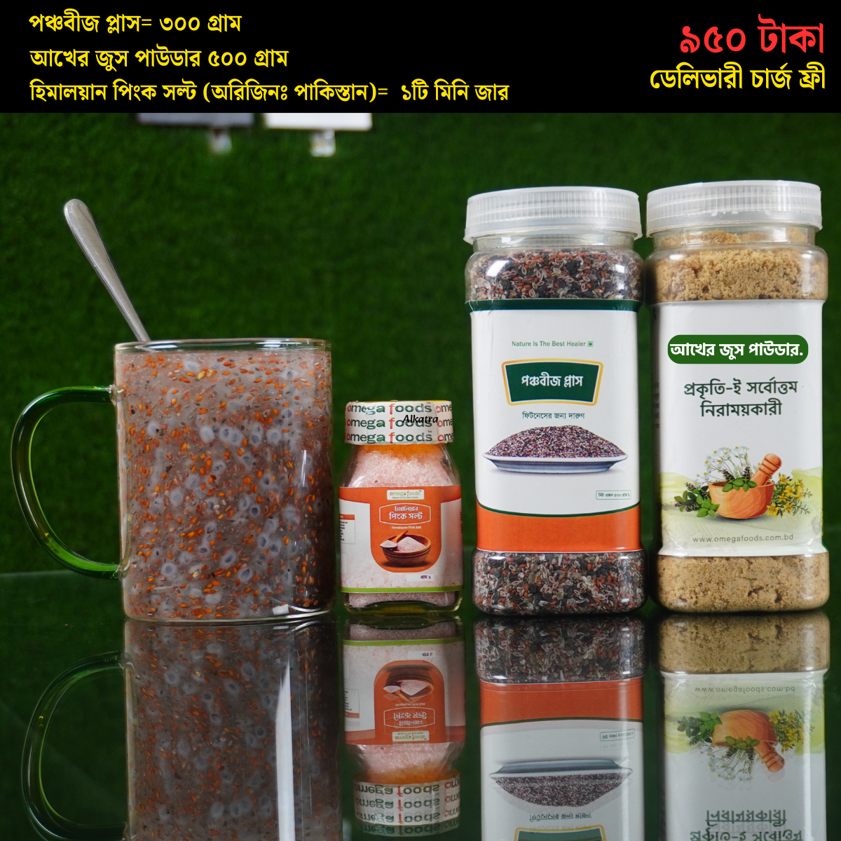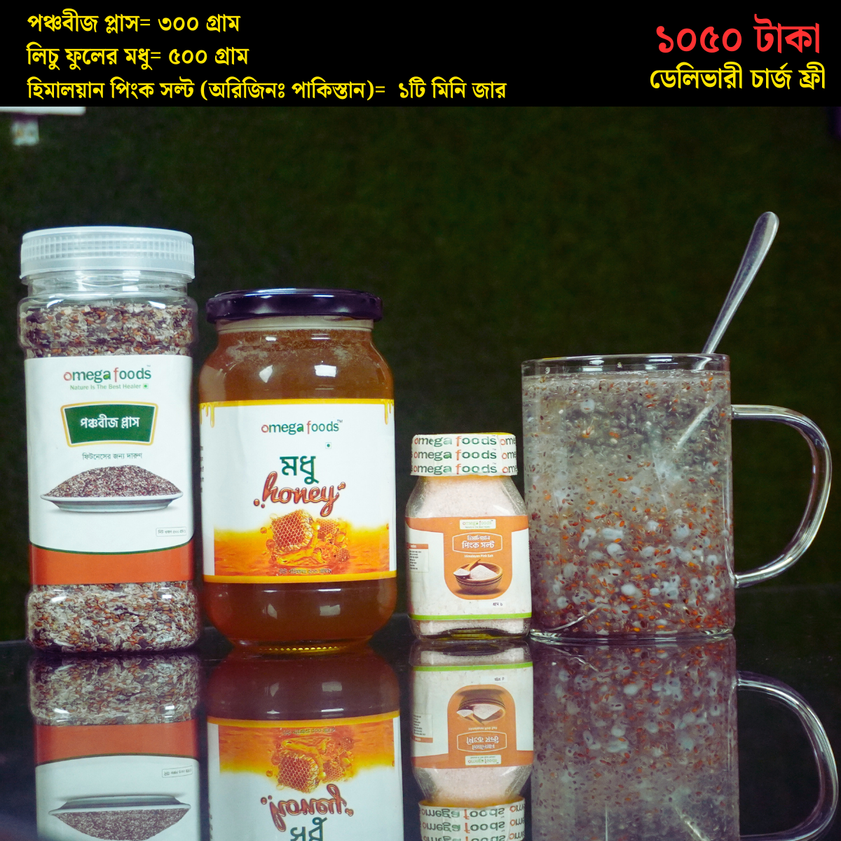 ১ গ্লাস পানি + ১ চামচ পঞ্চবীজ প্লাস ১০ মিনিট ভিজিয়ে রাখুন, খাওয়ার সময় মধু/আখের জুস পাউডার/হিমালয়ান পিংক সল্ট পরিমাণ মতো মিশিয়ে নিন, সম্ভব হলে লেবুর রস এড করে প্রতিদিন খালি পেটে সকালে অথবা রাতে ঘুমানোর আগে।