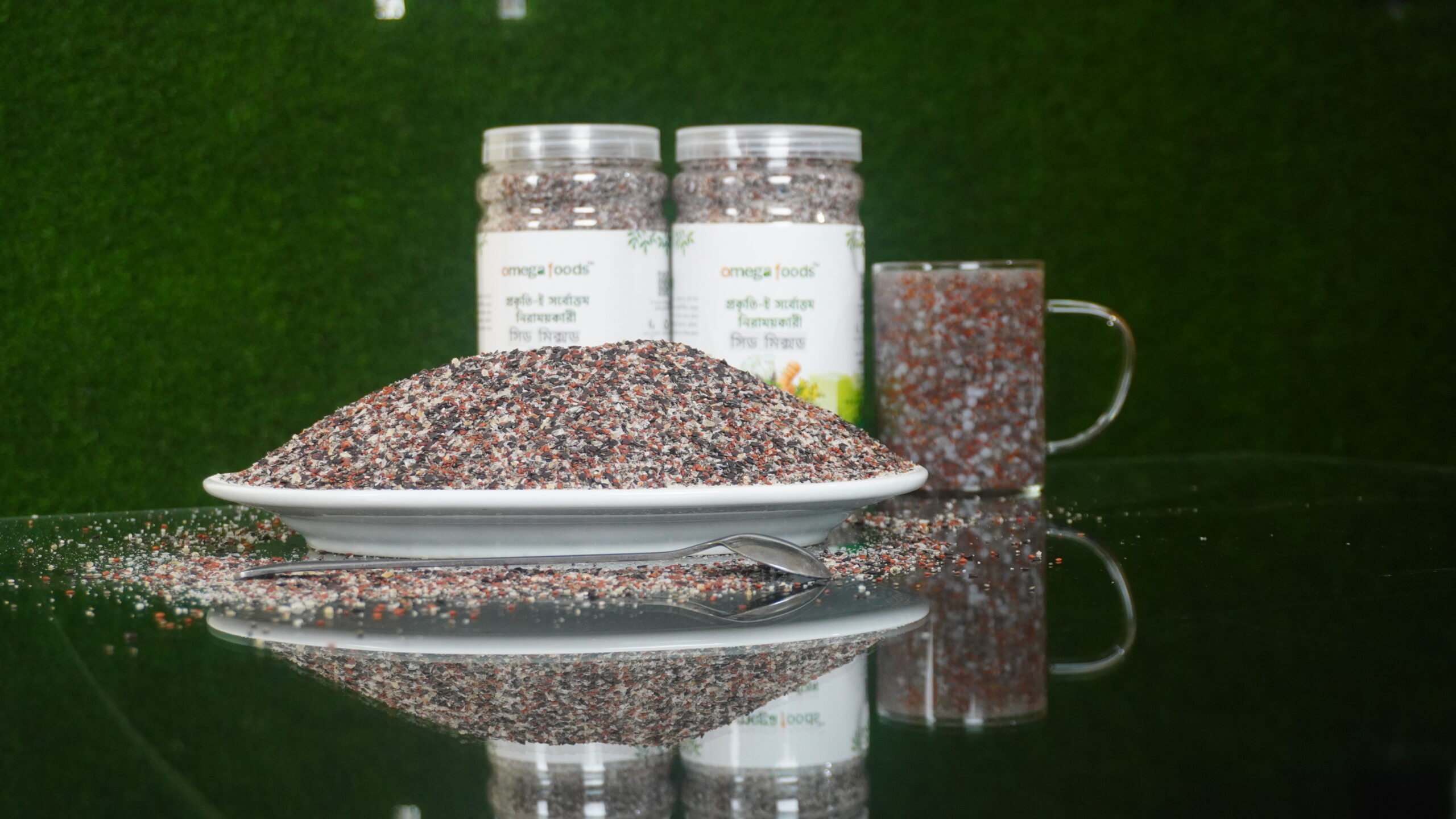 পঞ্চবীজ প্লাস (ফিটনেসের জন্য দারুণ) অর্থ্যাৎ পাঁচ ধরণের অধিক স্বাস্থ্যকর সুপার সিডসের সংমিশ্রণে তৈরী করা Omega Foods এর পঞ্চবীজ প্লাস।